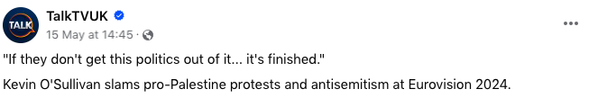 La seconda carta vincente che utilizzano è la loro trappola più antica: l’antisemitismo. Molti post su Facebook che parlavano del recente concorso Eurovision riguardavano la reazione del pubblico all’esibizione del cantante israeliano. La gente interveniva rumorosamente. Era chiaro che molte persone erano infastidite dal fatto che un paese attualmente impegnato in un genocidio fosse ancora in gioco. La Russia, d’altro canto, era stata espulsa dal concorso, anche se Israele ha ucciso più donne e bambini in sei mesi di quanto sia avvenuto in Ucraina, pur accettando i numeri delle più selvagge fonti ucraine, e aggiungendovi anche il totale delle vittime di tutti gli altri conflitti attuali del mondo. Ciò che sta accadendo a Gaza è in ordine di grandezza più orribile di qualsiasi conflitto a memoria d’uomo.